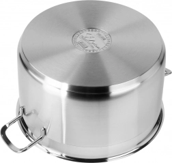 Lonec je primeren za vse vrste kuhalnih plošč, vključno z indukcijo, in je prilagojen kuhanju z minimalno količino maščobe brez nepotrebne izgube vitaminov in mineralov. Praktičen jeklen pokrov in udobni ročaji olajšajo rokovanje. Površina iz kakovostnega nerjavnega jekla 18/10 se zlahka čisti in je odporna proti koroziji.