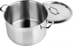 Odkrijte zanesljivega pomočnika v kuhinji: nerjavni lonec ANETT s pokrovom, ki izstopa z masivno izdelavo, odlično akumulacijo toplote in elegantnim videzom. Zahvaljujoč veliki prostornini 8,2 l boste zlahka pripravili juhe, omake in dušene jedi za vso družino. Večplastno akutermično dno hitro in enakomerno razporeja toploto, kar prihrani čas in energijo.