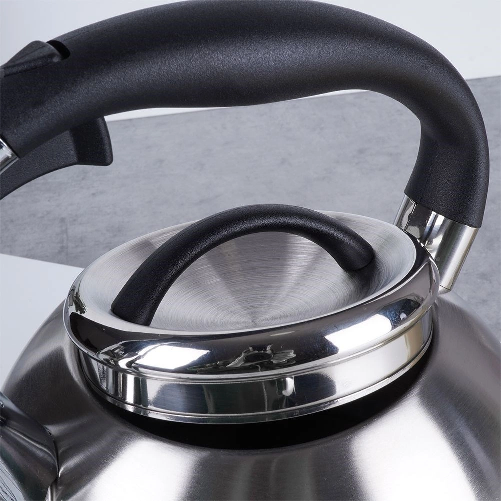 Klasičen čajnik iz nerjavečega jekla z uporabnim volumnom 2 l in skupnim 2,7 l ponuja hitro segrevanje vode, samodejno piščalko, udoben ročaj, ki se ne segreva ter univerzalno uporabo na vseh vrstah štedilnikov, vključno z indukcijo. Elegantna srebrna izvedba se poda tako v moderne kot klasične kuhinje.