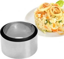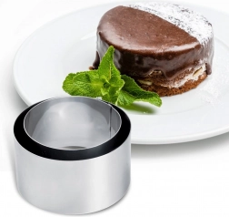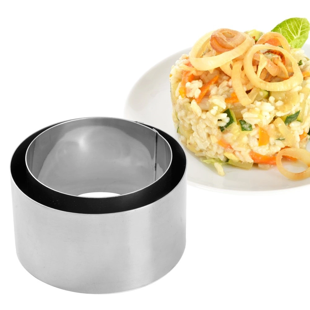 Nerjavni obroči oblikujejo sladice, solate in priloge v natančne valje z gladkim robom za impresivno predstavitev na krožniku.