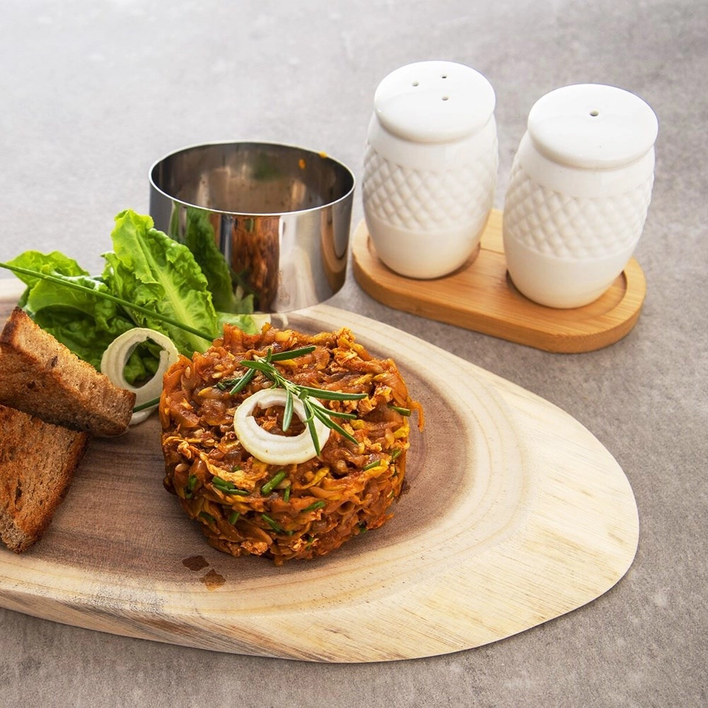 Set dveh nerjavnih obročev je idealen za pripravo tortic, tartelet, večplastnih solat, riža, krompirja ali želejev. Odporno nerjavno jeklo zagotavlja dolgo življenjsko dobo, higieno in stabilno obliko. Z dvema velikostma ustvarite učinkovit porcioniranje in plating kot v profesionalni kuhinji.
