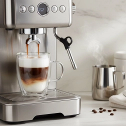 Prozorna izvedba poudari plasti lattéja in napitkom doda privlačen videz – popolno za domače bariste.