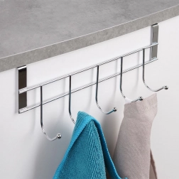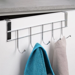 Obešalnik preprosto obesite na zgornji rob vrat ali vratc omarice – brez orodja, ne poškoduje sten niti ploščic. Primeren za vrata širine do 2 cm.