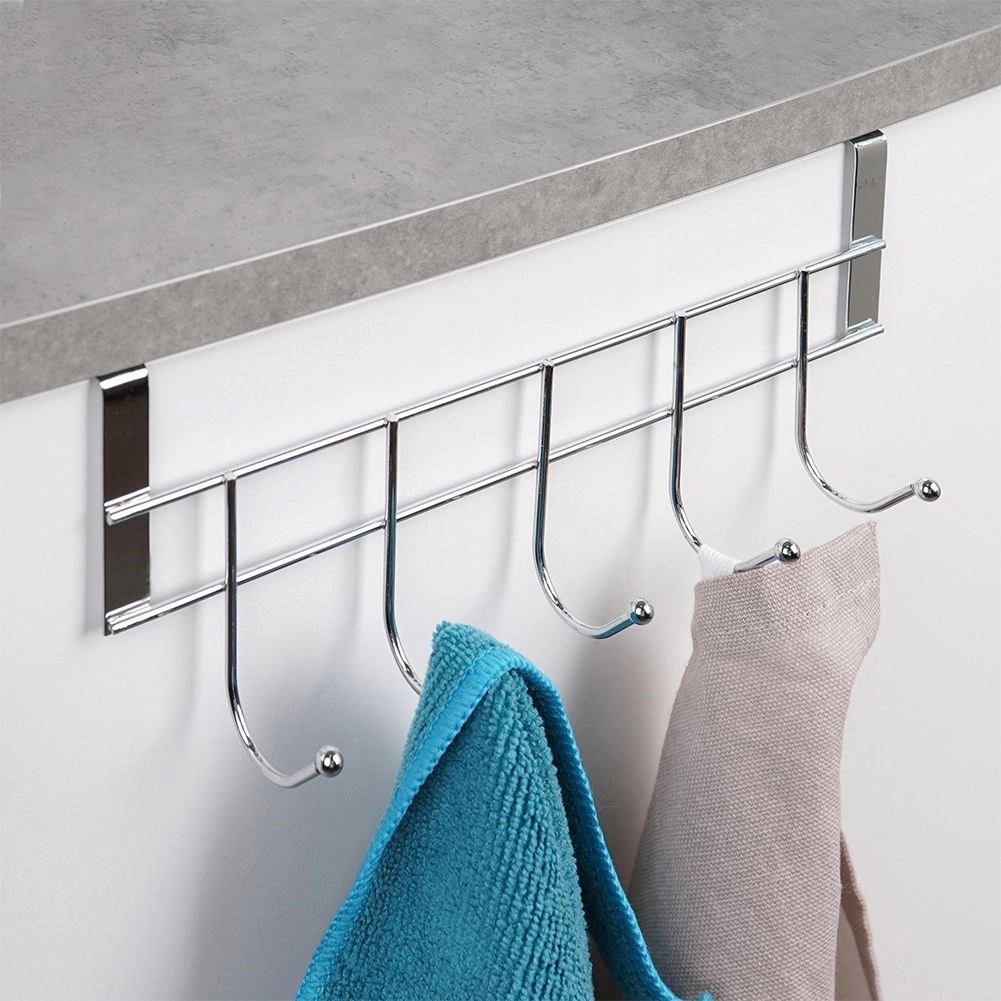 Zaradi petih robustnih kavljev zlahka obesite brisače, oblačila, kuhinjske rokavice, krpe ali kozmetične dodatke. Namestitev je brez orodja in brez vrtanja – idealno za najemniška stanovanja in hitro rešitev shranjevalnega prostora.