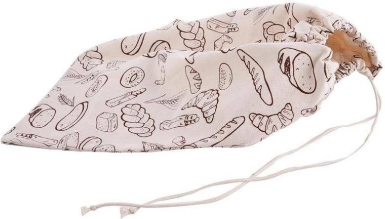 Hranite kruh in drugo pecivo naravno sveže. Bombažna vrečka pomaga omejiti izsuševanje in prekomerno vlago, s čimer zmanjšuje tveganje za nastanek plesni. Zahvaljujoč nežnemu bež dizajnu z motivom peciva se lepo poda v vsako kuhinjo.