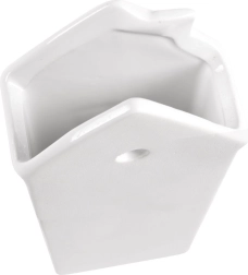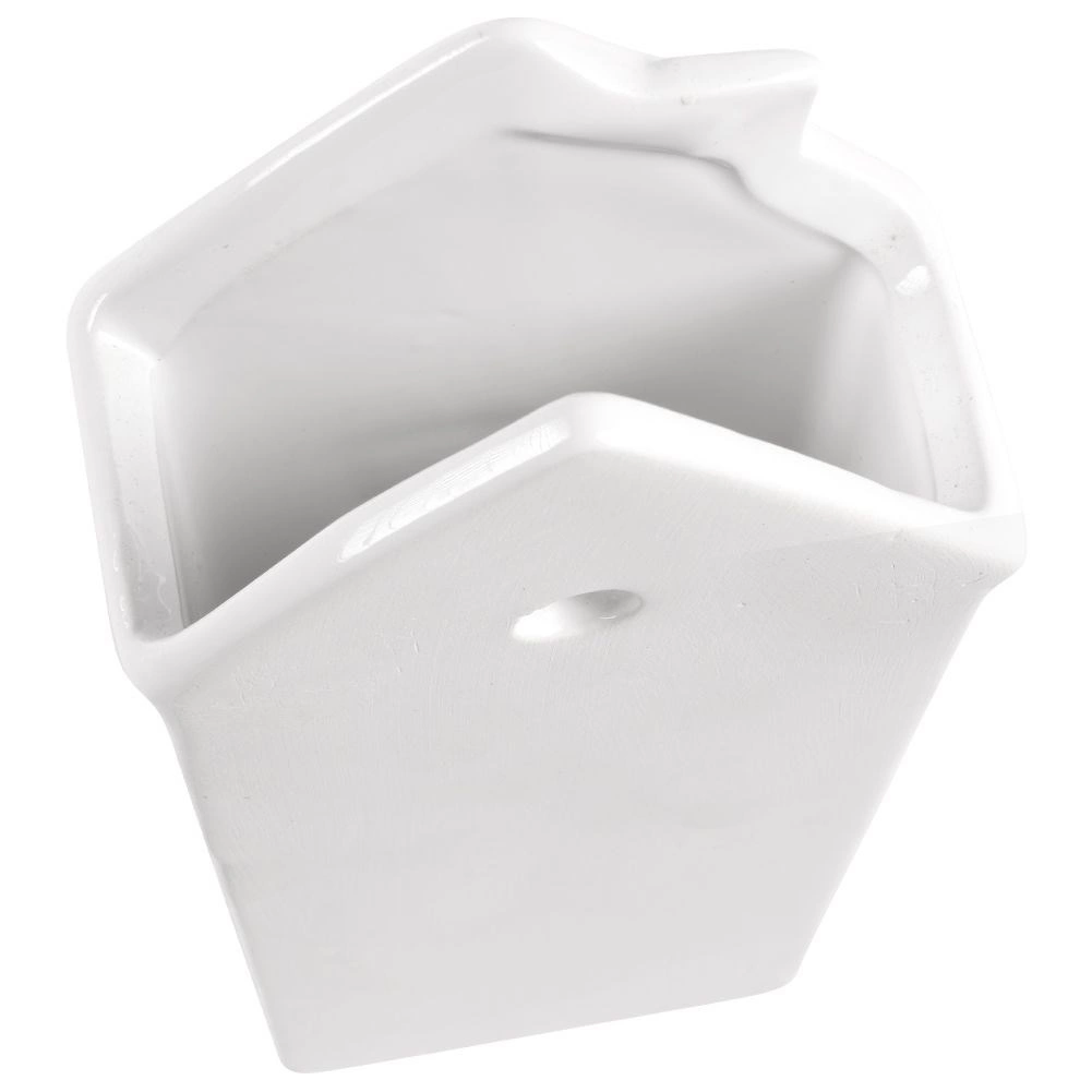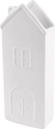 Zaradi kakovostne keramike z bleščečo belo glazuro deluje zelo elegantno in je hkrati enostaven za vzdrževanje. Minimalistična hiškina dekoracija se poda v kuhinjo, dnevno sobo, spalnico in otroško sobo. Preprosto obešanje na kovinski kavelj olajša vsakodnevno uporabo.