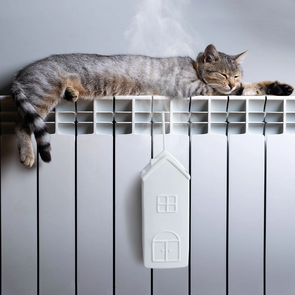 Praktičen in stilski vlažilnik zraka za radiator v obliki hiške je idealen pomočnik v obdobju suhega zraka med ogrevanjem. Dovolj ga je napolniti z vodo in obesiti na radiator – izhlapevajoča voda naravno poveča vlažnost v prostoru, kar prispeva k prijetnejšemu okolju za dihanje in spanje.