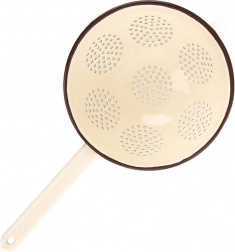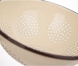Elegantna rjavo‑bež izvedba z dekorativnimi elementi se poda tako v moderno kot podeželsko kuhinjo. Cedilo se zlahka čisti in ga lahko perete v pomivalnem stroju. Zaradi odprtine v ročaju ga preprosto obesite na letvico ali kavelj. Emajlirana posoda lahko vsebuje manjše proizvodne nepravilnosti (npr. izbokline ali rahlo nesimetričen tisk), ki ne vplivajo na kakovost ali funkcionalnost in poudarjajo njeno tradicionalno izdelavo.