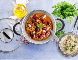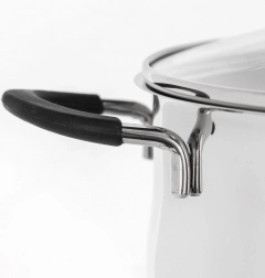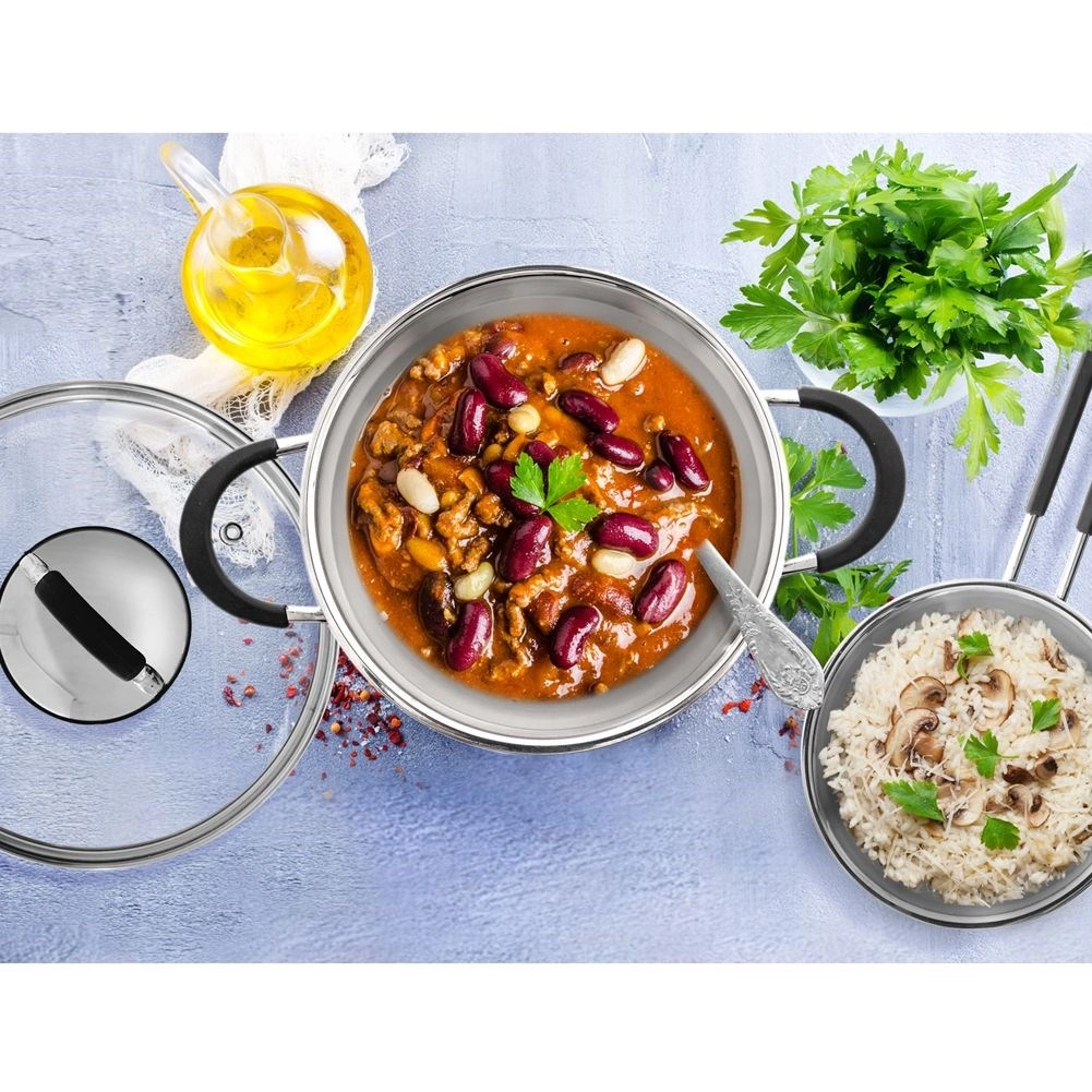 Ročaji s črnim silikonom ostanejo hladni, stekleni pokrov z ventilom za odvajanje pare pa omogoča enostaven nadzor nad kuhanjem.