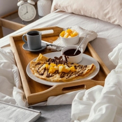 Zložljiv zajtrkovalni pladenj iz kakovostnega bambusa olajša vsakodnevna opravila doma. Uporabite ga za serviranje zajtrka v postelji, sprostitev ob filmu ali kot mizico za delo s prenosnikom ali tablico. Zaradi kompaktnih mer in zložljive konstrukcije se enostavno pospravi in je pripravljen za uporabo v hipu.