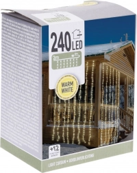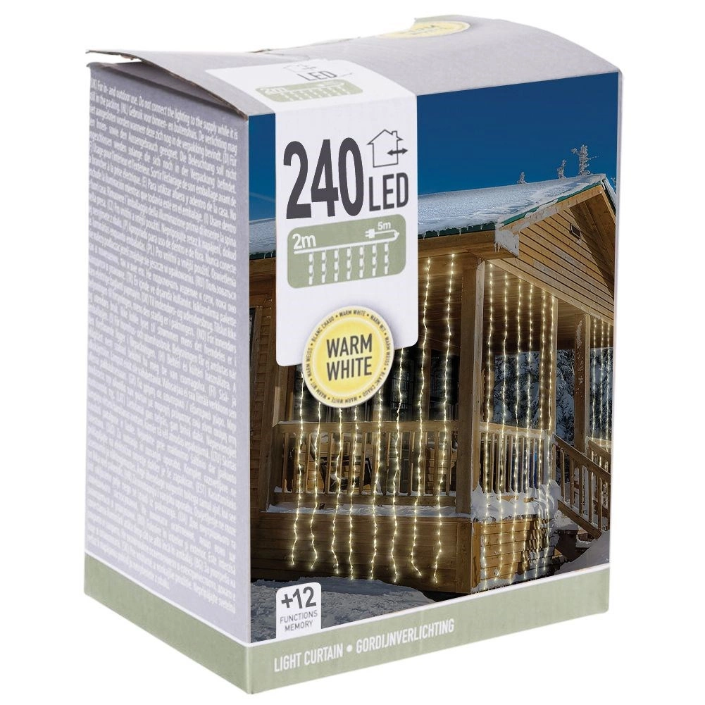 Zavesa je namenjena za notranjo in zunanjo uporabo. Zaščita IP44 zagotavlja odpornost na vremenske vplive, prosojni kabli pa ne motijo dekorja in pustijo, da svetloba zasije. Napajanje iz omrežja in 5 m napajalni kabel olajšata namestitev tudi na težje dostopnih mestih.