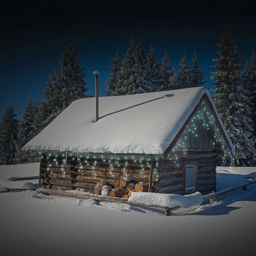 Ustvarite čarobno praznično vzdušje s kakovostno svetlobno zaveso dolžine 5,85 m in višine 52 cm. 180 LED diod s hladno belo barvo svetlobe zagotovi svetel in hkrati varčen učinek, idealno za fasade, pergole, ograje in notranjost.