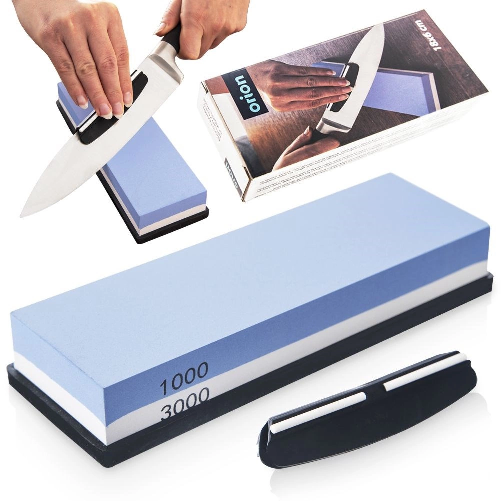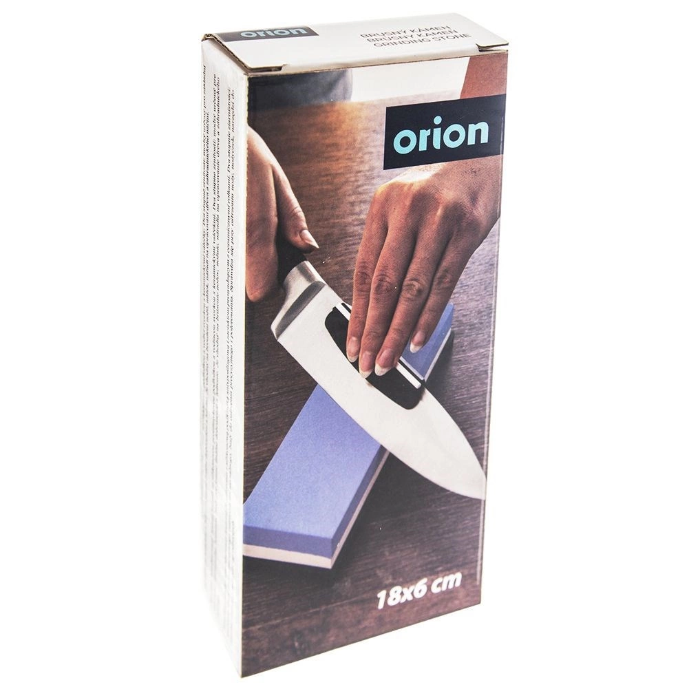 Brusni kamen ORION združuje kakovosten korund v dveh zrnatostih 1000/3000 in varno brušenje zahvaljujoč protizdrsnemu podstavku. Modra stran (1000) hitro obnovi ostrino, bela stran (3000) jo nežno spolira za popolnoma gladek rez. Kotno vodilo ohranja pravilen naklon rezila v razponu 15–20°, kar zagotavlja dosledne rezultate tudi za začetnike.