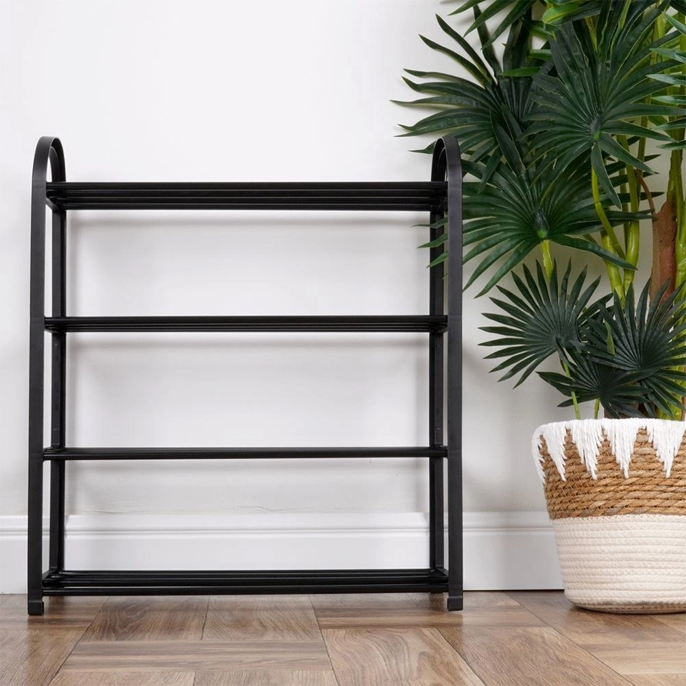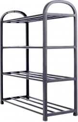 Ohranite red v obutvi z elegantnim črnim stojalom, ki maksimira vertikalni prostor. Štiri odprte police z razmikom približno 14,5 cm omogočajo lahek dostop, dobro prezračevanje in hiter pregled nad pari. Minimalističen dizajn se poda tako modernim kot klasičnim interierjem.