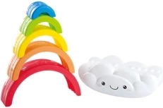 Ta ljubka sestavljanka v obliki mavrice z oblačkom je idealna prva igrača za razvoj veščin. Zaradi živih barv naravno pritegne otroke in jih motivira k raziskovanju oblik in velikosti. Pri zlaganju lokov vadijo prijem, koordinacijo oko–roka in potrpežljivost.