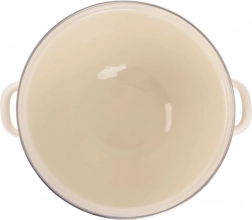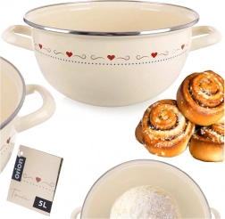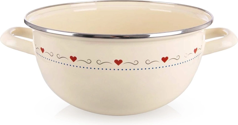 Ta stilska retro emajlirana skleda TONCA je odličen pomočnik v vsaki kuhinji. Izdelana je iz kakovostnega emajliranega jekla v krem barvi z diskretnim motivom src in z nerjavečim robom za večjo vzdržljivost. Prostornina 5 l nudi dovolj prostora za pripravo večjih porcij, solat ali testa. Zahvaljujoč dvema čvrstima ročajema se udobno prenaša in v njej lahko jedi postrežete tudi neposredno na mizi.