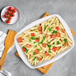 Ta prostorna porcelanasta posoda je odlična izbira za pripravo lazanje, zapečenega krompirja, zelenjave, mesa in sladkih sladic. Gladka notranja površina omogoča enostavno izločanje jedi in udobno čiščenje. Zahvaljujoč brezčasni beli izvedbi lahko jedi takoj elegantno postrežete na mizi.