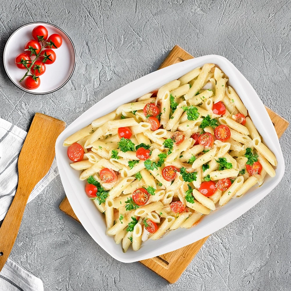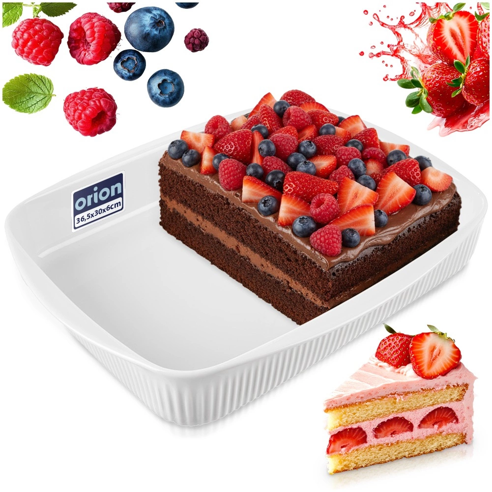 Velika porcelanasta pekačeta s prostornino 4 l in merami 36,5 × 30 × 6 cm je idealna za zapečene jedi, sladke in slane deserte ter vsakodnevno peko. Odporna porcelanasta zasnova v beli barvi, dva praktična ročaja za enostavno prenašanje ter možnost uporabe v pečici, mikrovalovni pečici in pomivalnem stroju.