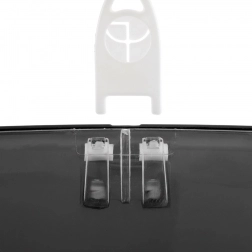 Sprednji del v prozorno matirani izvedbi olajša nadzor zaloge, zadnji in spodnji del v črni barvi delujeta elegantno in sta nezahtevna za vzdrževanje. Del pakiranja sta ključ za zaklepanje in montažni pribor za hitro namestitev na steno.