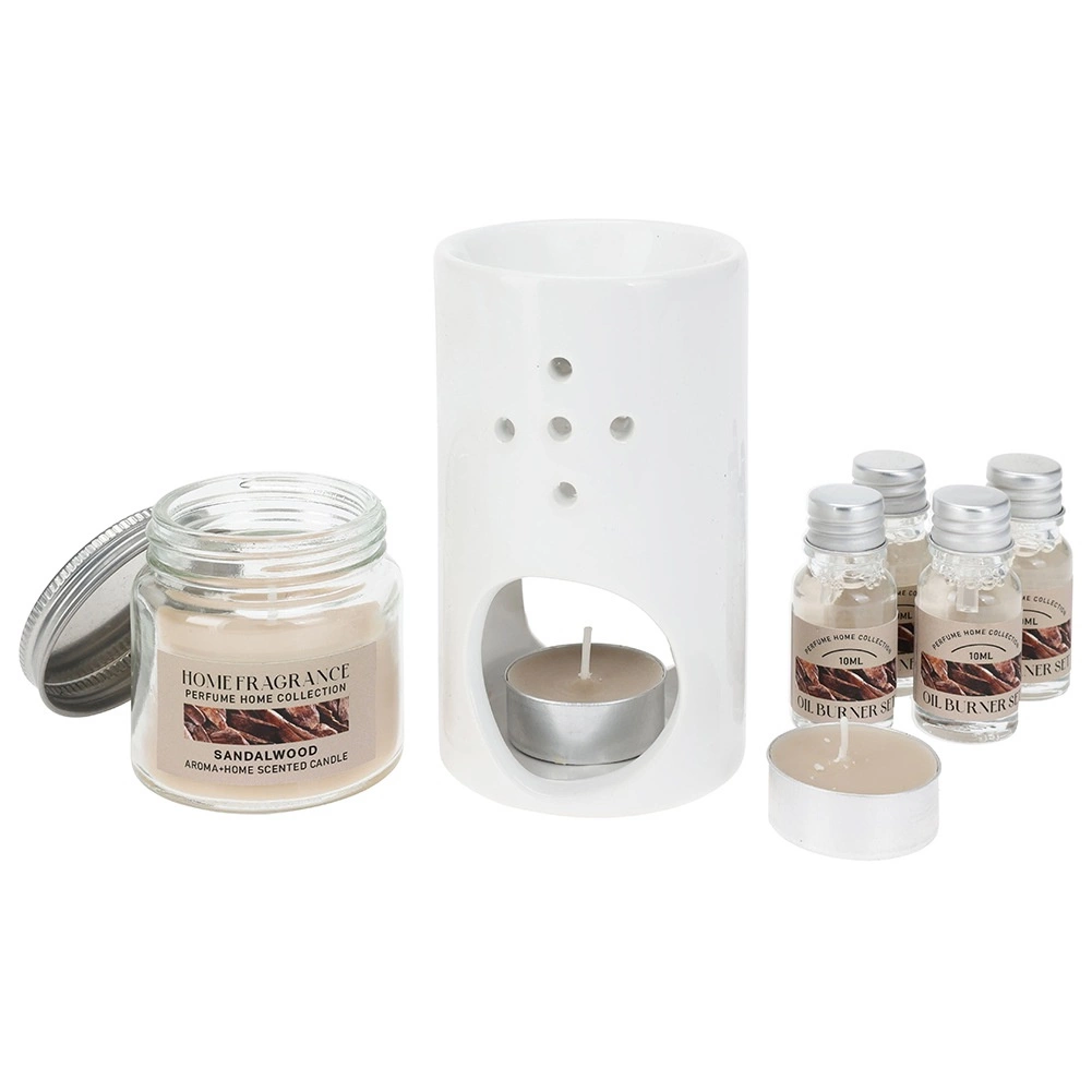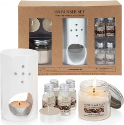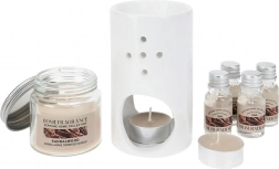 Ta stilski komplet za aromaterapijo vsebuje vse, kar potrebujete za ustvarjanje sproščujočega vzdušja. Keramična aromatična svetilka nežno segreva olja in sprošča njihovo bogato aromo, ki odišavi prostor in pomaga pri sprostitvi po napornem dnevu. Vse je zapakirano v elegantno škatlo z okencem, zato je set pripravljen za takojšnje podarjanje.