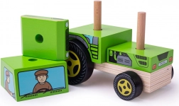 Ta leseni traktor BIGJIGS združuje sestavljanko z vozičkom za igro. Preden se odpravi na “polje”, morajo otroci pravilno natakniti in zložiti dele na zatiče, s čimer na zabaven način razvijajo logiko in potrpežljivost. Zaradi premičnih koles je nato pripravljen za vožnjo po otroški sobi.
