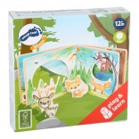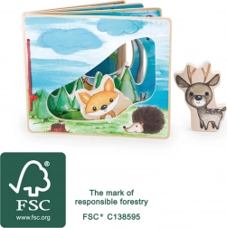 Vstopite v globok gozd z interaktivno leseno knjigo, ki spodbuja domišljijo otrok. S figuricami lisice in jelena, ki pomagajo odkrivati floro in favno, bo vsaka igra edinstvena izkušnja.