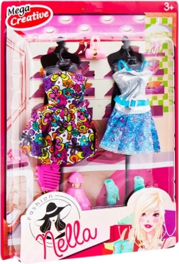 Ta barvit komplet za punčke prinaša veliko zabave in možnosti za ustvarjanje novih oprav. V paketu najdete dve obleki in izbor stilskih dodatkov, ki dopolnijo vsak videz – od čevljev do torbice. Zaradi kombinacije plastike in tekstilnih materialov so kosi lahki, prijetni na otip in enostavni za oblačenje.