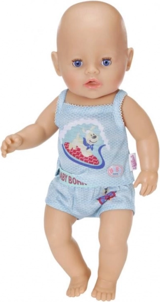 Dva udobna kompleta spodnjega perila BABY BORN za punčke velikosti 43 cm bosta razveselila vsakega malega skrbnika. Rožnata različica navduši z tiskom školjk in hlačkami z vijugastimi črtami, ki spominjajo na valove, modra različica pa z motivom kapljic, ki prikličejo morské luskice. Oblačila so mehka, prijetna in zasnovana za preprosto oblačenje brez nepotrebnega zadrževanja.