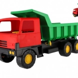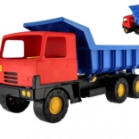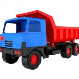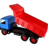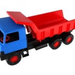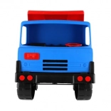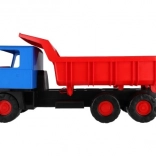 Robusten plastični tovornjak z modro kabino in rdečo nagibno kesono bo razveselil male graditelje doma in na peskovniku. Zaradi dolžine 75 cm, vzdržljivih koles in funkcionalnega nagibanja zlahka prevaža pesek, kamenčke in igrače. Lahka in varna zasnova podpira kreativno igro na prostem.