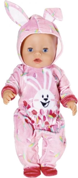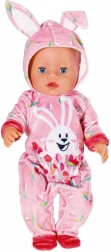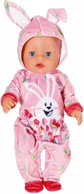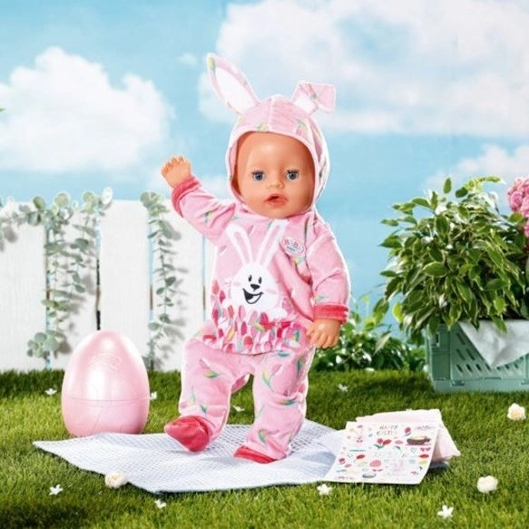 Velikonočno jajce BABY born je popolno presenečenje za vse male ljubitelje punčk. V rožnatem jajcu se skriva prisrčen pajac z motivom zajčka Benna in spomladanskih tulipanov. Kapuca ima vesela zajčja ušeska, ki oblačilu dodajo igriv videz.