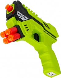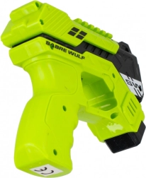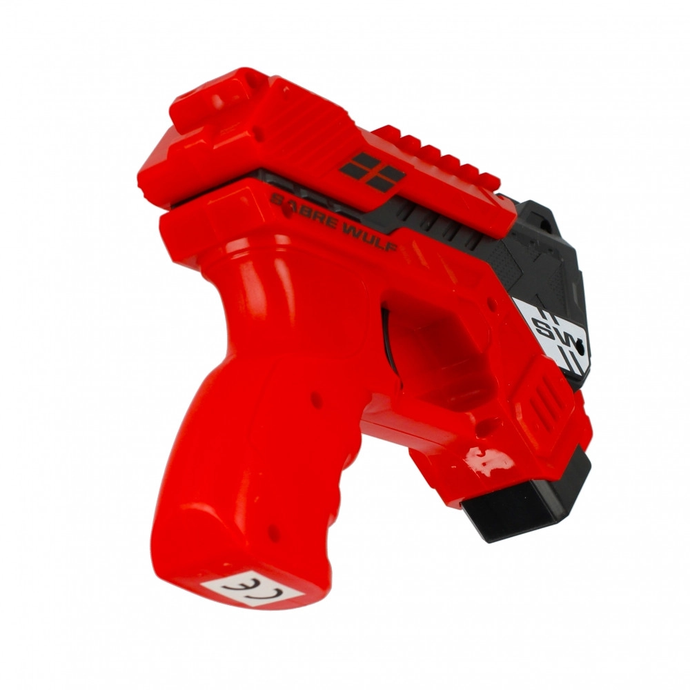Del paketa je 6 mehkih penastih izstrelkov, ki so varni in primerni za igro v notranjih prostorih in na prostem. Pištola je na voljo v dveh privlačnih barvah – rdeči in zeleni – ter izstopa z modernim “blaster” videzom SABRE WULF.