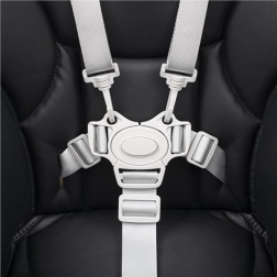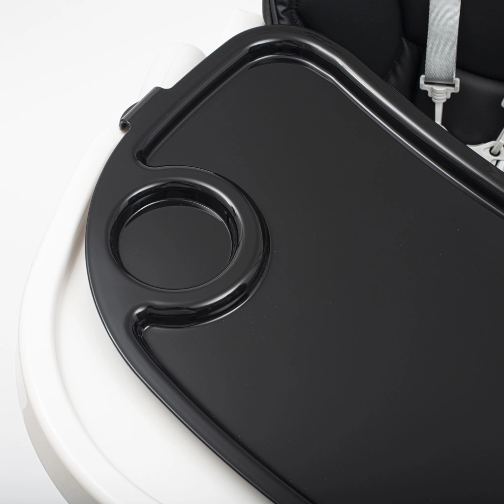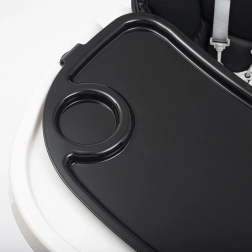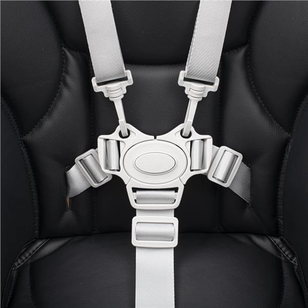Varnost zagotavlja nastavljiv 5-točkovni pas, medtem ko raznolike nastavitve omogočajo najti idealen položaj za hranjenje in počitek. Dvojni snemljiv pladenj olajša serviranje in vzdrževanje, višino stolčka je mogoče nastaviti v 5 stopnjah, oporo za noge pa v 3 stopnjah.
