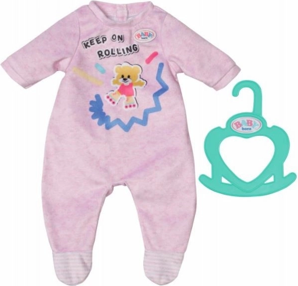 Udoben rožnat pajac za punčke BABY BORN Little velikosti 36 cm z všitimi nogavičkami in prisrčnim potiskom medvedka. Odličen za vsakodnevno igro in spanje – enostavno oblačenje in slačenje, kar spodbuja samostojnost in fino motoriko. Priložen je tudi praktičen obešalnik. Mehak material, preprost kroj in stajliš dizajn za neskončno zabavo.