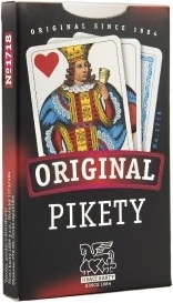 Klasične igralne karte Piketi s kompletom 32 listov v praktični škatlici 7 × 11 cm za enostavno prenašanje. Idealne za mariáš, prši, sedmo in druge priljubljene kartne igre. Kakovosten tisk in tradicionalne slikovne karte zagotavljajo dobro berljivost in dolgo življenjsko dobo.