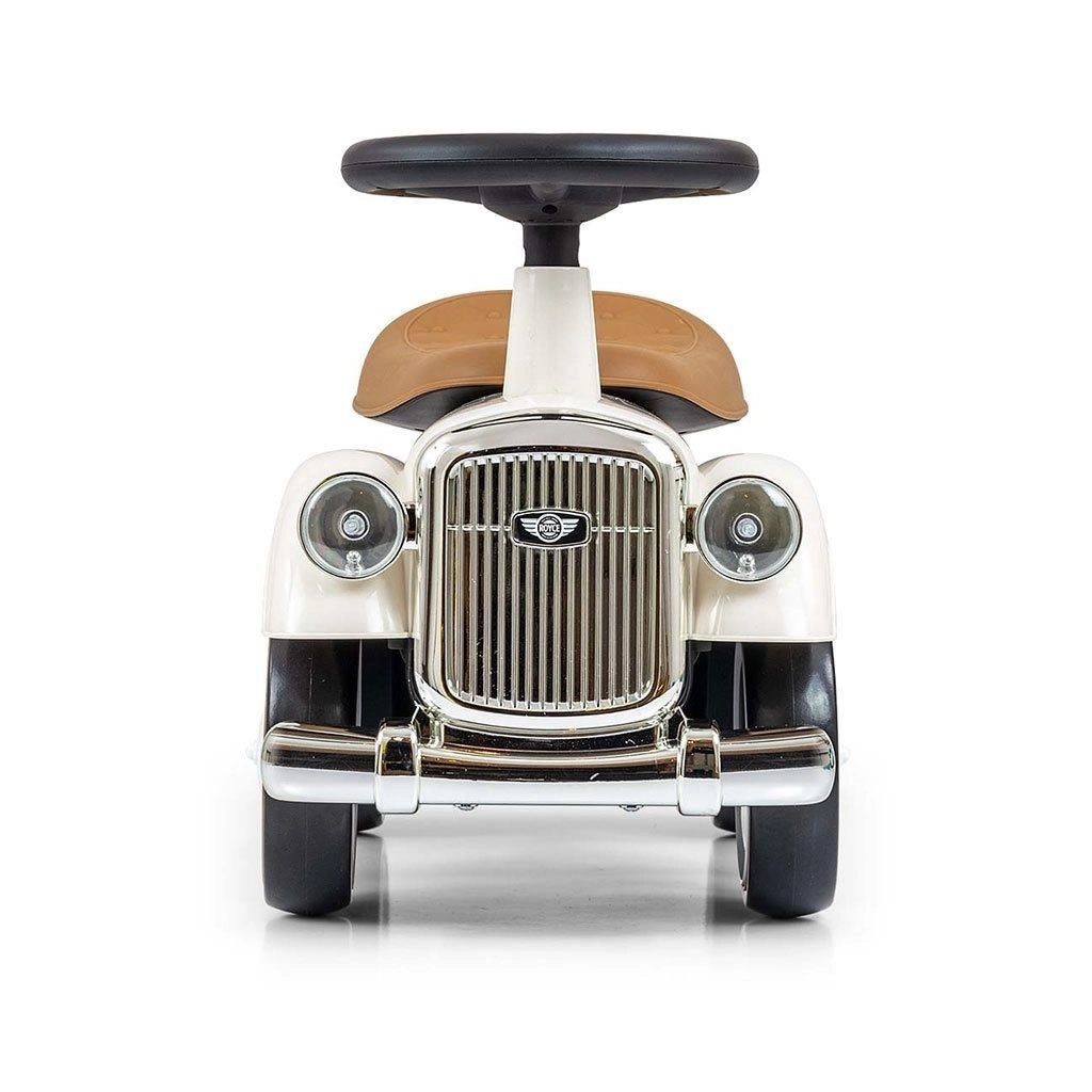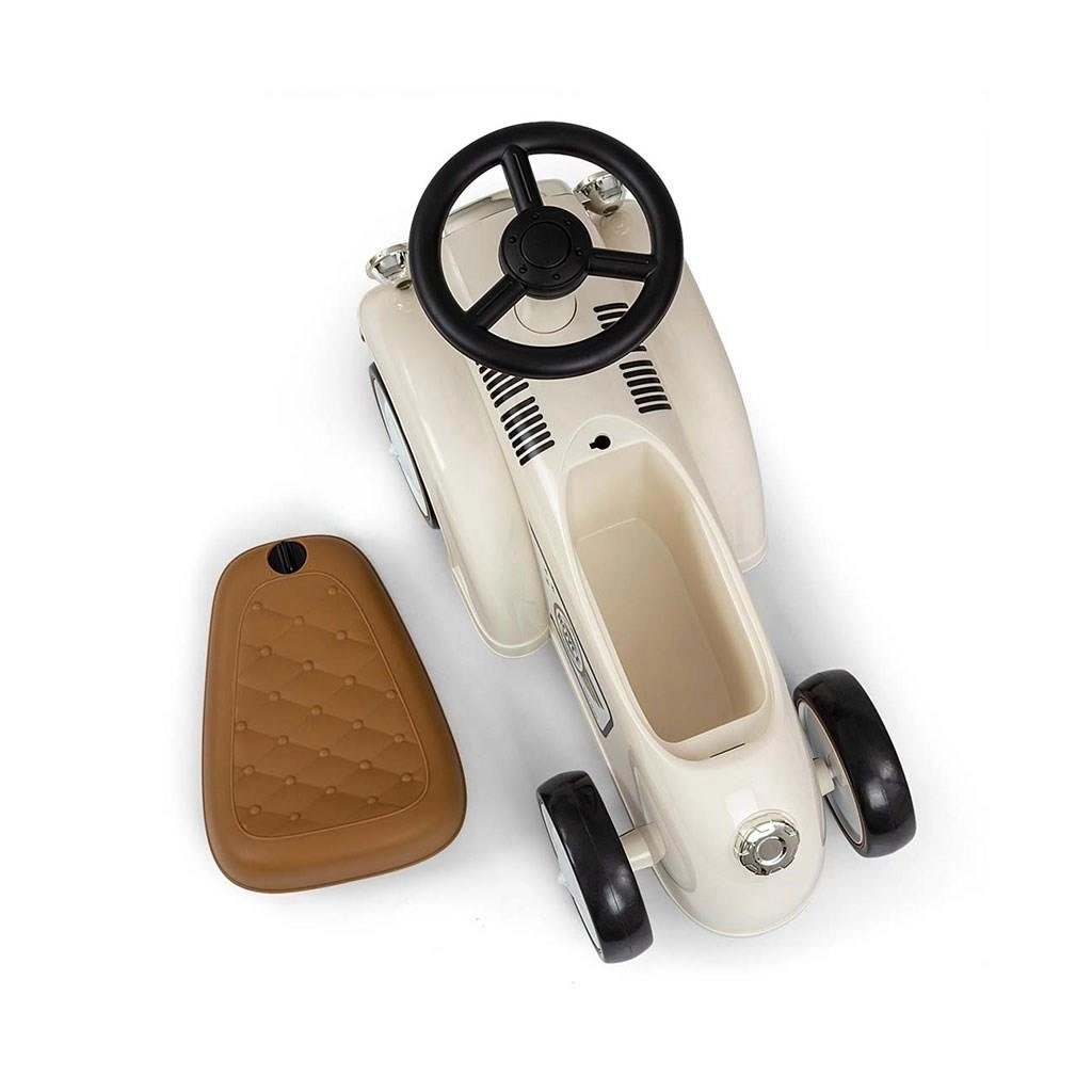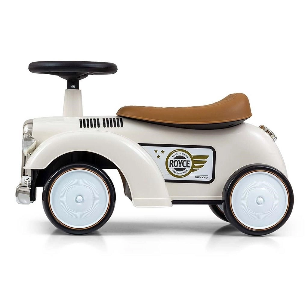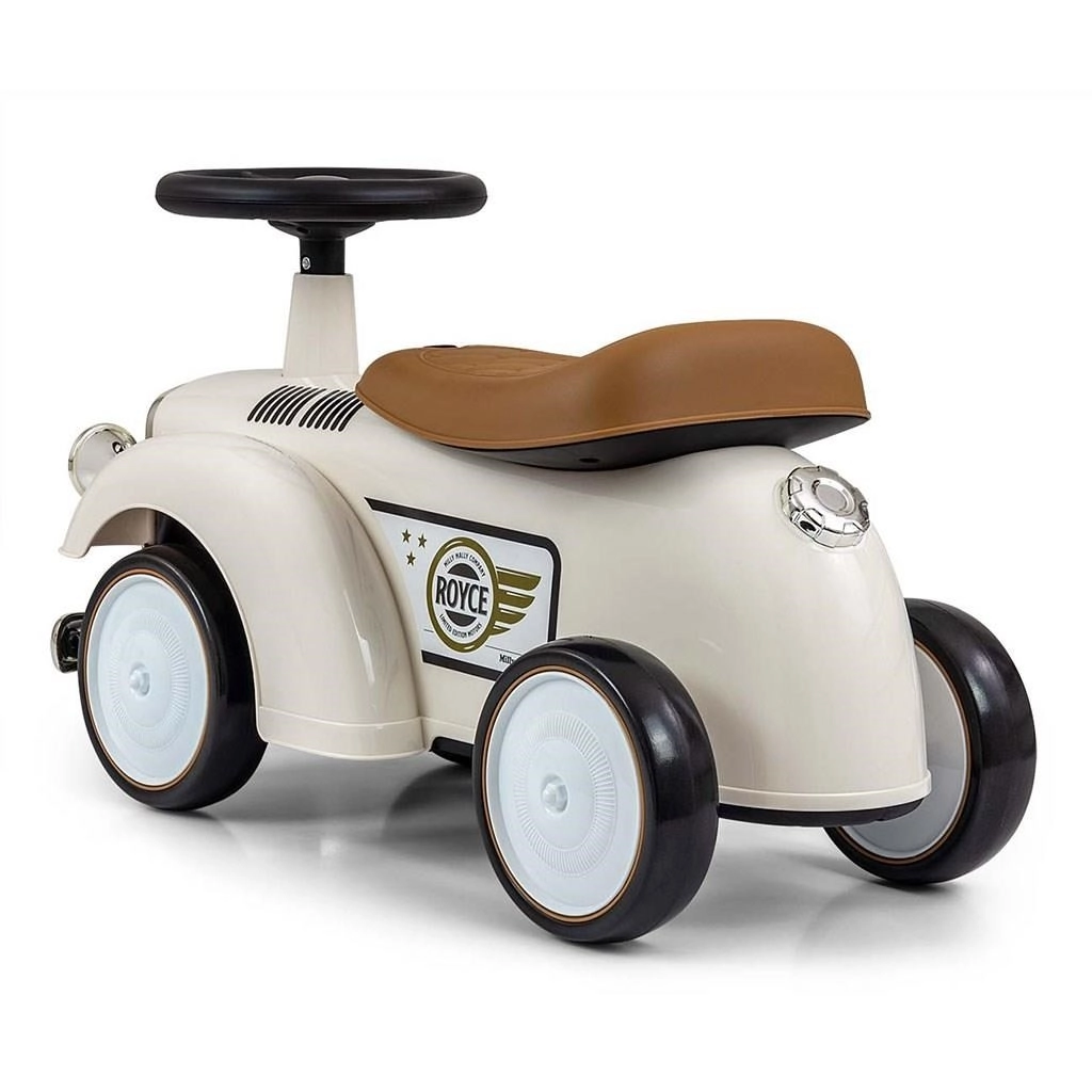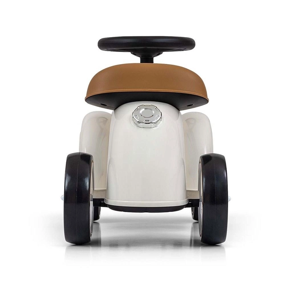 Poganjalec v elegantni bež barvi združuje brezčasen retro videz s praktičnostjo za vsakodnevno igro. Zahvaljujoč ergonomskim oblikam in oblikovanemu sedežu je vožnja udobna, medtem ko volan z omejenim zasukom pomaga zmanjšati tveganje prevrnitve. Otroci na zabaven način razvijajo ravnotežje, koordinacijo in motorične spretnosti.