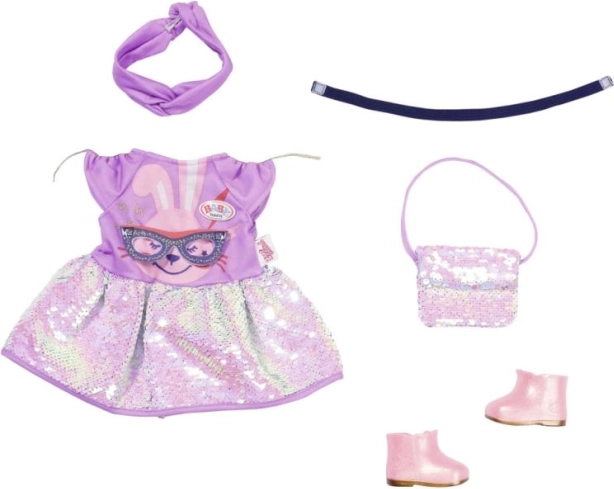 Popoln outfit za vašo Baby Born punčko! Preprosto oblecite svojo najljubšo punčko v te prelepe obleke in masko ter opazujte, kako zažari celotna igra. Izdelana iz kakovostnih materialov, ki omogočajo vzdržljivost in udobje za punčko. Idealna za spodbujanje ustvarjalnosti in igranja vlog, ta modni set prinaša veselje vsaki mali modni divi.