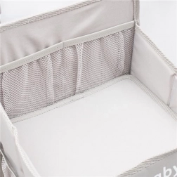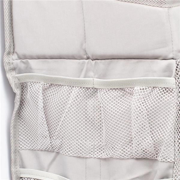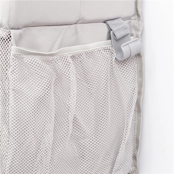 Iz kakovostnega 100 % poliestra za dolgo življenjsko dobo in preprosto vzdrževanje. Starši bodo cenili hitro montažo na posteljico in stabilno pritrditev. Idealno za vsakodnevno organizacijo plenic, vlažilnih robčkov, kozmetike, dud in manjših igrač.
