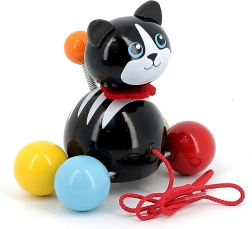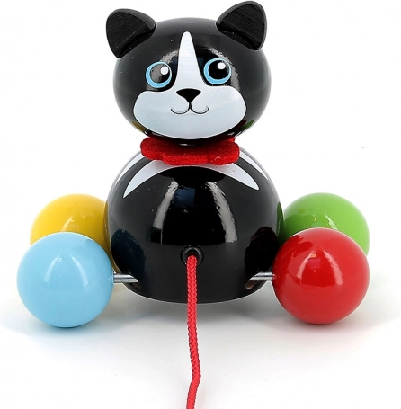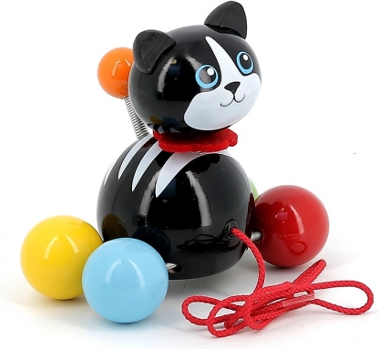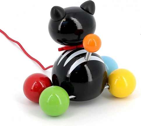 Vlečna mucka Minou je odličen spremljevalec za prve sprehode po stanovanju. Otroci si bodo zaradi barvnih krogličnih koles in rdeče vrvice igračo hitro vzljubili ter naravno razvijali grobo motoriko, stabilnost in koordinacijo oko–roka. Lahka in trpežna konstrukcija iz lakiranega masivnega lesa je prijetna na dotik in enostavna za čiščenje.
