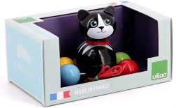Minimalistična zasnova s črnim telesom, belo gobčkom in premičnim repkom na vzmetki nudi otrokom vizualno in zvočno stimulacijo pri vsakem koraku. Kakovostna izdelava znamke Vilac francoske proizvodnje zagotavlja varnost in dolgo življenjsko dobo igrače.