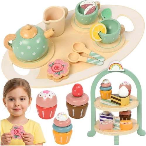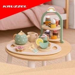 Ustvarite otrokom njihov prvi čajni obred – set Kruzzel združuje realističen videz sladic z varnimi materiali in trdno konstrukcijo. Večnadstropno stojalo, pladenj z ročaji in pester izbor sladic vabijo k igram vlog, ki razvijajo domišljijo in komunikacijo. Zahvaljujoč kakovostnemu lesu in netoksičnim barvam je igra varna in dolgotrajno odporna.