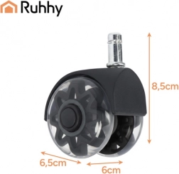 Kolesca RUHHY prinašajo udobje in varnost za vaša tla in stol. Zahvaljujoč mehki PU površini se gladko valjajo po panelih, parketu, keramiki in preprogi, ne da bi puščala praske. Jekleni ležaj in ojačana konstrukcija zagotavljata dolgo življenjsko dobo in zanesljivost pri vsakodnevni uporabi.