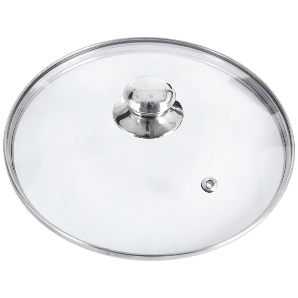 Praktičen steklen pokrov 32 cm je idealna zamenjava ali dopolnilo k posodi brez pokrova. Prozorno steklo z nerjavnim robom in ročajem je odporno do 200 °C, zato ga boste uporabili pri vsakodnevnem kuhanju, dušenju in cvrenju.
