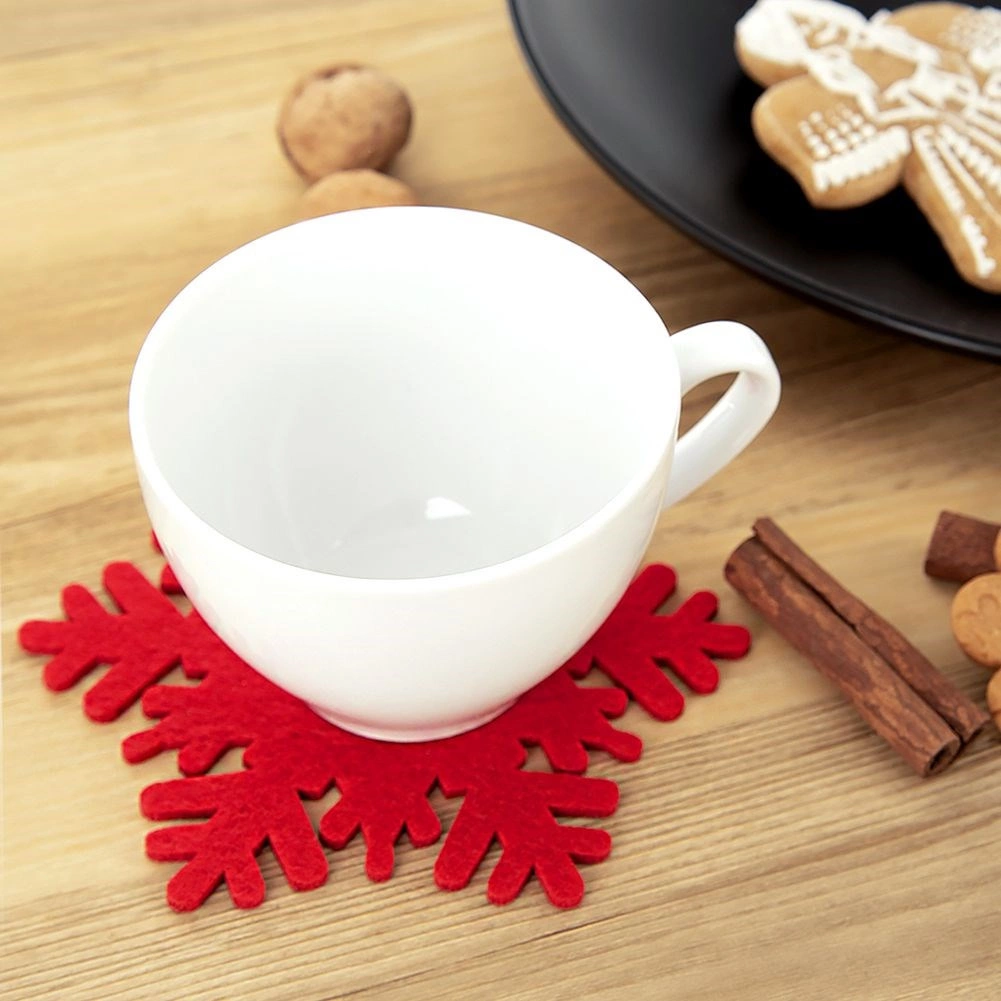 Rdeči podstavki v obliki snežinke takoj ustvarijo praznično vzdušje in dopolnijo vaše pogrinjanje v zimskem in božičnem času.