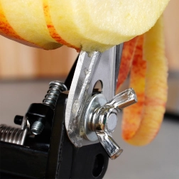 Z enim enakomernim vrtenjem ročice olupite, odstranite sredico in narežete pravilne kolobarje debeline približno 3 mm. Odlično za sladice, čips in sušenje.