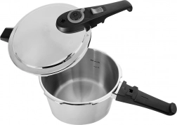 Konstrukcija iz nerjavnega jekla s sendvič dnom odlično akumulira in enakomerno porazdeljuje toploto. Posoda je združljiva s plinskimi, električnimi, steklokeramičnimi, halogenskimi in indukcijskimi kuhalnimi ploščami. Vzdrževanje je preprosto – lonec je mogoče pomivati v pomivalnem stroju (pokrov s sistemom regulacije tlaka je priporočljivo pomivati ročno).