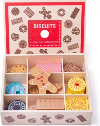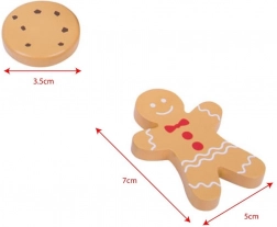 Predstavljamo leseno škatlo s piškoti za igranje, ki vsebuje izbor priljubljenih piškotov, vključno z medenjaki in drugimi dobrotami. Ta komplet omogoča malim otrokom razvijati svojo kreativnost skozi igro navdihnjeno s peko.