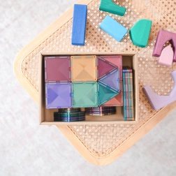 Pastelni začetni paket CONNETIX prinaša 64 prosojnih ploščic v nežnih barvah, s katerimi bodo otroci zgradili stolpe, gradove, mostove in rakete. Zahvaljujoč magnetom ob robovih se deli povezujejo z vseh strani, konstrukcije so trdne, prijeten »klik« pa motivira k nadaljnjemu raziskovanju. Komplet je odličen za razvoj STEAM veščin – od magnetizma in ravnotežja do simetrije ter 2D/3D geometrije.