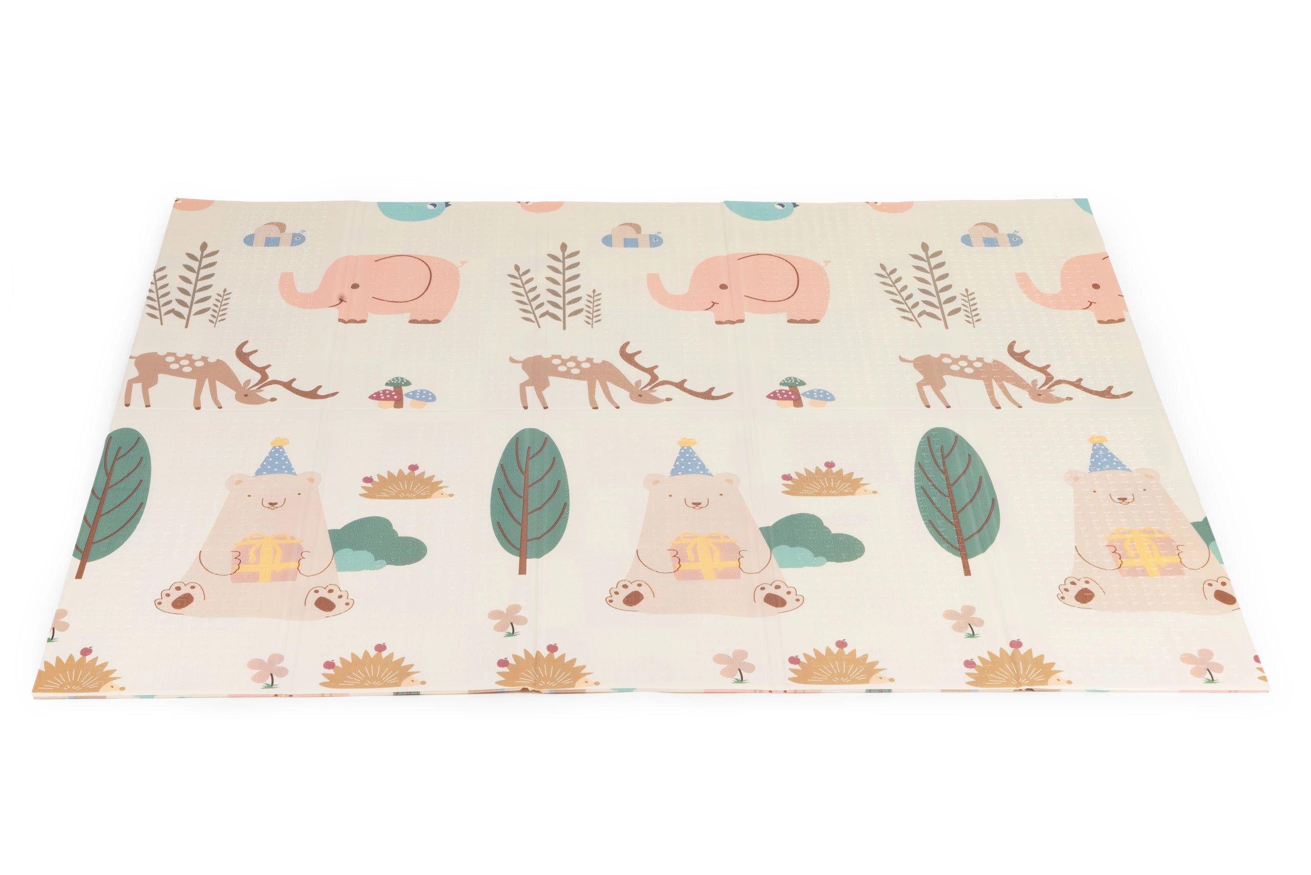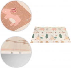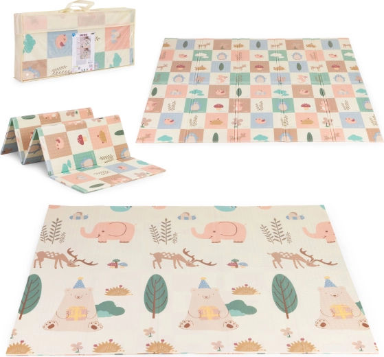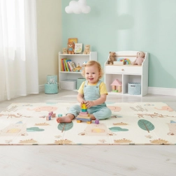 Ta otroška igralna podloga iz kakovostne XPE pene ustvari mehko, varno in higiensko mesto za dojenčke in malčke. Obe strani imata barvite, izobraževalne motive z živalicami in naravnimi elementi, ki spodbujajo kreativnost in naravno učenje. Protizdrsna tekstura na obeh straneh drži podlogo na mestu pri plazenju, sestavljanju kock in prvih korakih.
