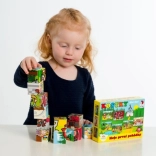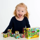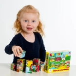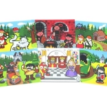 Dvanajst kock otrokom omogoča sestaviti šest različnih prizorov – na primer Rdečo kapico ali Janka in Metko. Zabava, ki se ne naveliča kar tako.