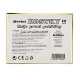 Trpežne lesene kocke v kartonski škatli so prijetne na dotik in izdelane v Češki republiki – varna in poštena izbira za otroke.